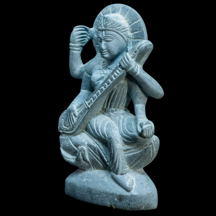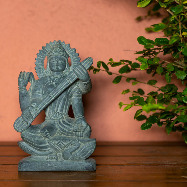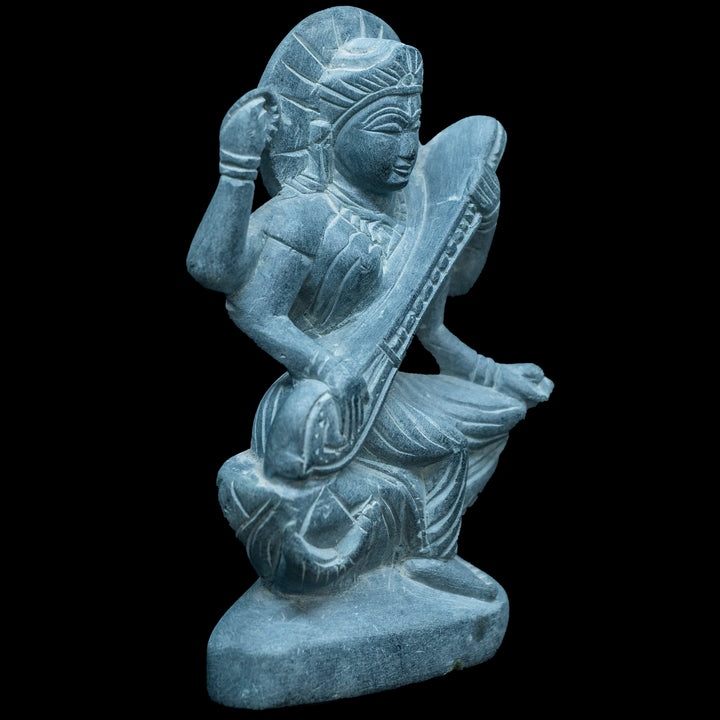Beautiful Saraswati murti: Stone sculpture of Hindu Goddess of Knowledge, Music and Art, Music Statue - Indian handicraft by mollisarts
