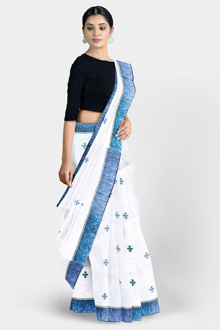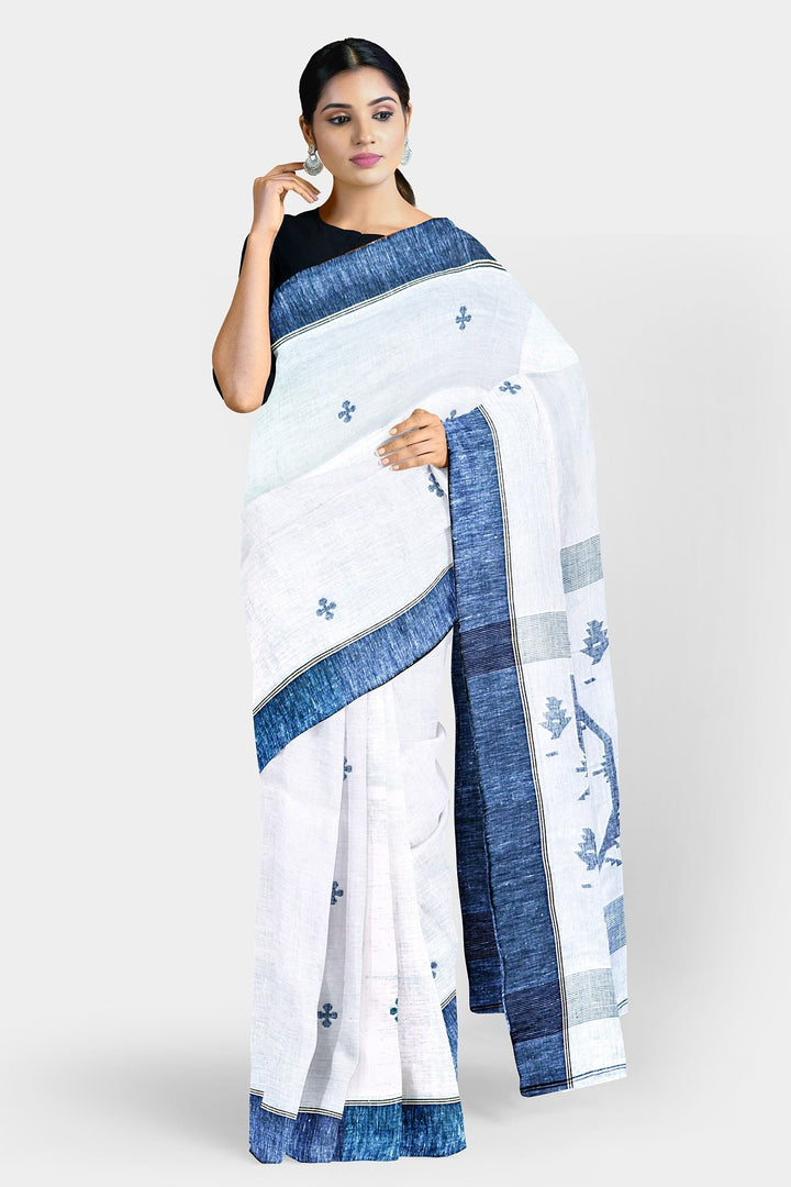 Bengali Handloom pure khadi cotton Jamdani saree (Not Dhakai) - Govt. of India certified handloom mark - Indian organic cotton sari & blouse