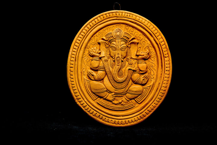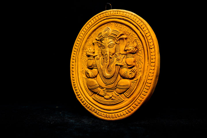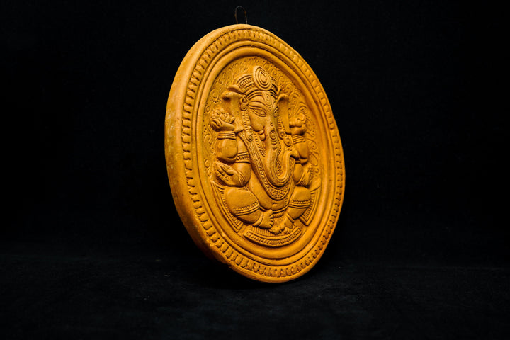 Ganesh terracotta sculpture - Hand Crafted Terracotta wall hanging plate - Primitive tribal craft And a Vintage Art Form - mollisarts -India