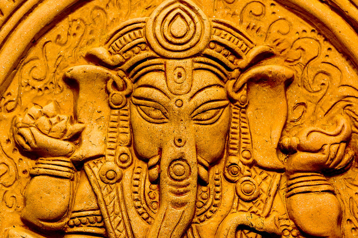 This Art Collectible: This lord Ganesha idol is made from Holy Ganges Clay, handcrafted and hand-painted. For longevity those craft items are burnt in a specific temperature and the selection of clay mud is also important, mostly collected from river beds. Each river has its unique soil and requires special care and processing, then only the final product becomes a signature and of course the cultural uniqueness is also prominent in each Indian folk art piece.