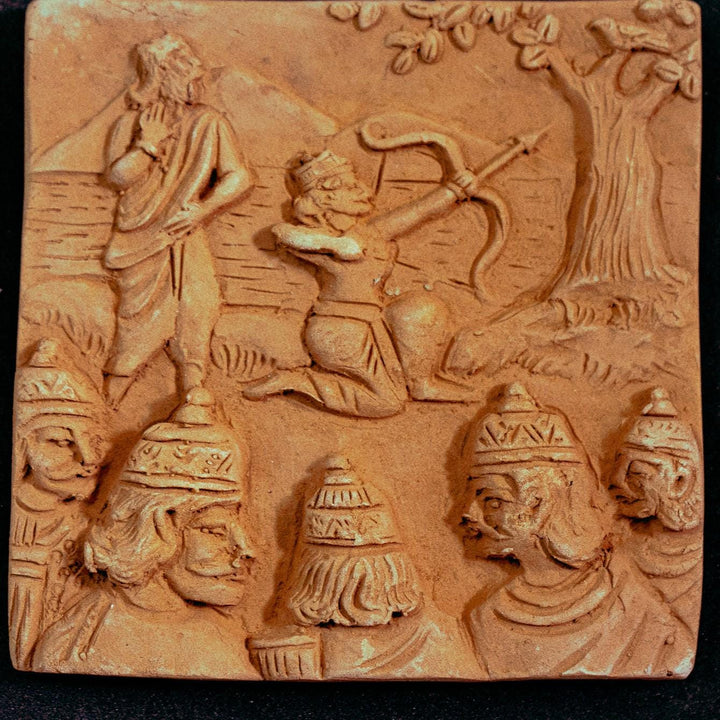 Handmade terracotta tiles depicting scenes of Mahabharat -Series - Hindu Mythology Art - Spiritual Indian Art by MollisArts