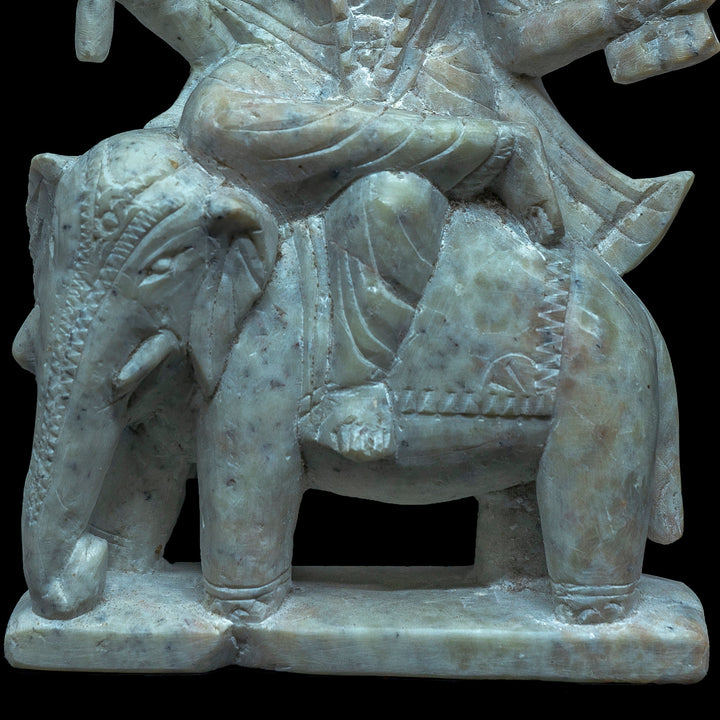Hindu god of craftsmen, artisans and architecture Vishwakarma on white elephant statue - Son of Lord Brahma stone carved Indian sculpture
