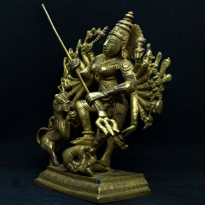 About This Collectible: This religious Hindu goddess Maa Durga statue is hand crafted from brass metal.