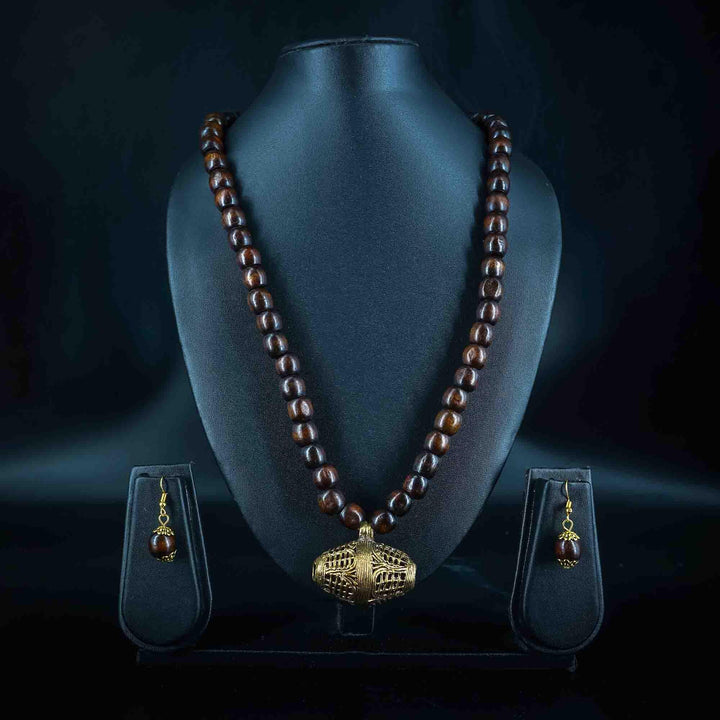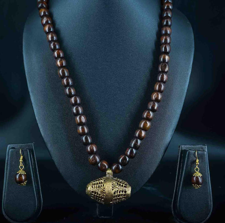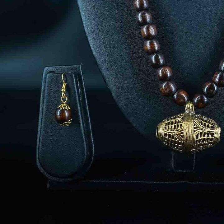 Indian Handmade Tribal jewelry - Dokra or Dhokra Dhol brass Necklace and earring set- Indic Boho Fashion - Presented by MollisArts