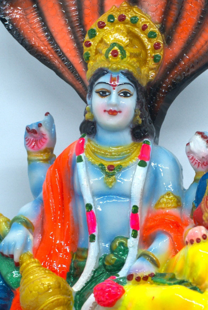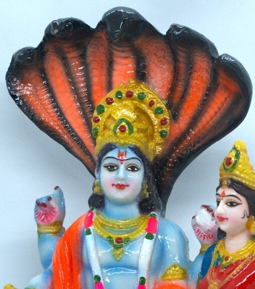 This Art Collectible: This Vishnu Lakshmi Narayan Stone Statue in Ananta sojya is a primitive handicraft from India. This is handmade and hand painted.