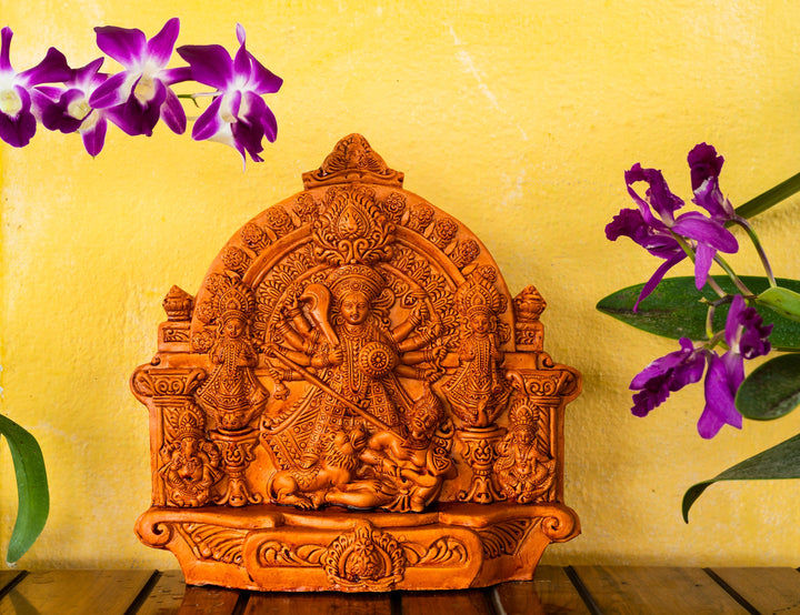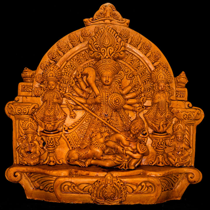 Mahishasura Mardini Traditional Terracotta Durga Murti Idol with family - Hand made & painted - Hindu statue- Delivery within 4 weeks