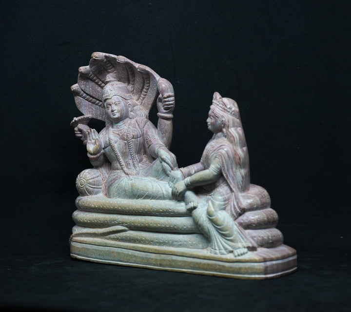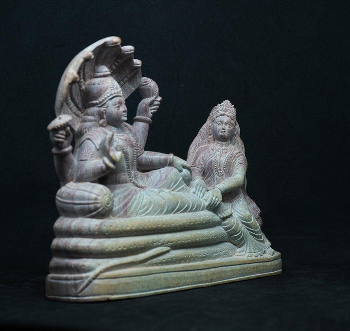 Monolithic Hindu Stone sculpture -Hand Made Vishnu Lakshmi Narayan in Ananta Sojya statue idol - aquarium decoration- mollisarts from India