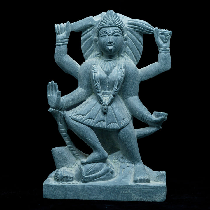 This Art Collectible: This Kali Amman Stone Statue is hand crafted from a single stone with some basic and traditional tool kits. While visiting a heritage historic town situated in South India we learned this art form. To know the full story , please visit our website molliasrts.