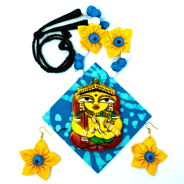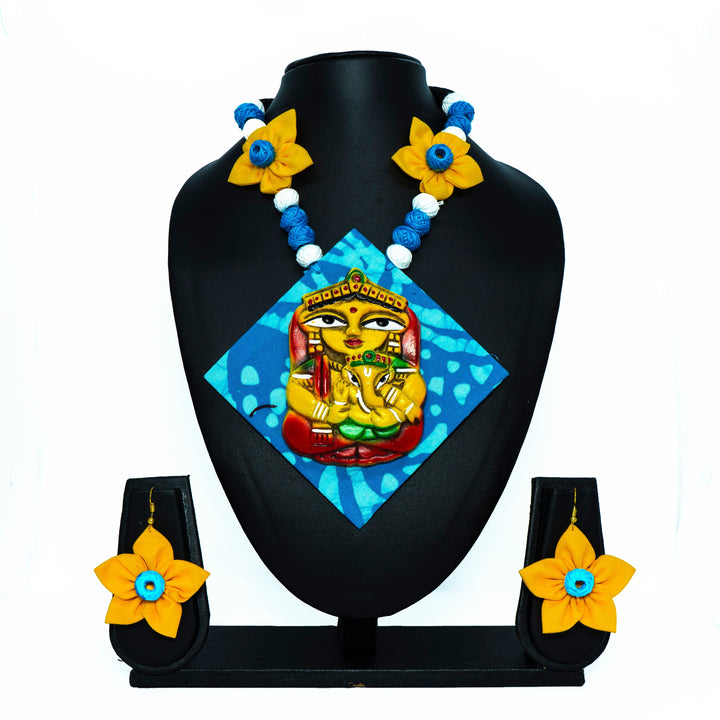Terracotta Temple jewelry Ganesh Janani - Essential Ethnic jewellery for Dussehra or Durga Puja or Navaratri or Diwali - Indic Boho Fashion